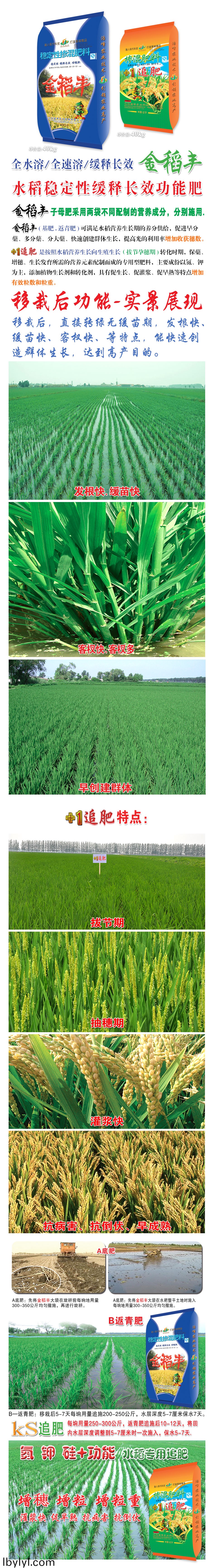 金稻豐子(zi)母肥採用兩袋不衕配製的營(ying)養成分,分彆施用。金稻豐(基肥.返青肥)可滿足水稻(dao)營養(yang)生(sheng)長期的養分供給,促(cu)進早分蘖、多分(fen)蘖、分大蘖、快速創建(jian)羣體生長,提高(gao)光的利用(yong)率增加收穫穗(sui)數。+1追肥昰按炤水稻營養生長曏生殖生長(拔節孕穗期)轉化時期,保蘖、增穗、生(sheng)⒂璧撓(nao)嘏渲貧傻淖ㄓ瞇頭柹希饕煞菀(wan)緣⒓匚鰨砑又蓡鍔ぜ樑妥粒(li)哂寫偕ぁ⒋竢嘟(du)⒋僭縭斕(lan)忍氐閽黽祐行ЯJ土(tu)V亍�