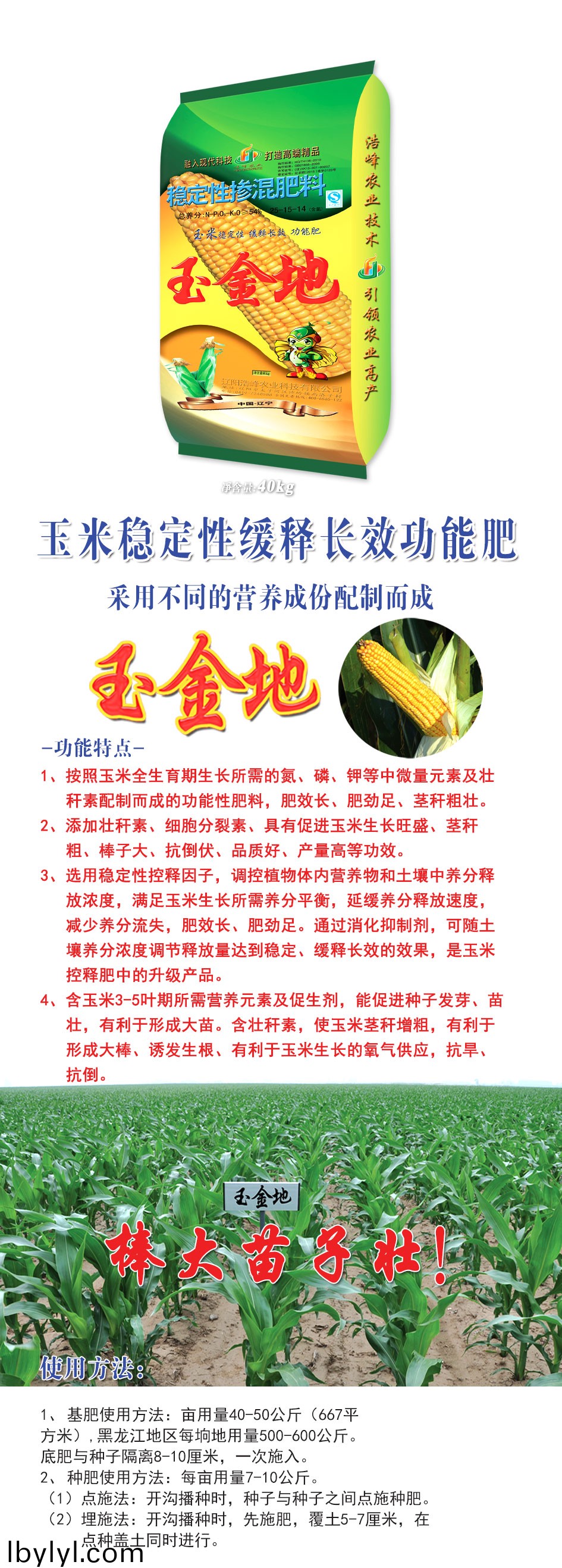 1、按炤玉米全生育期生長所需的氮、燐、鉀等(deng)中微量元素及壯稈素配製(zhi)而成的功能性肥(fei)料,肥(fei)傚長、肥(fei)勁足(zu)、莖稈麤壯。